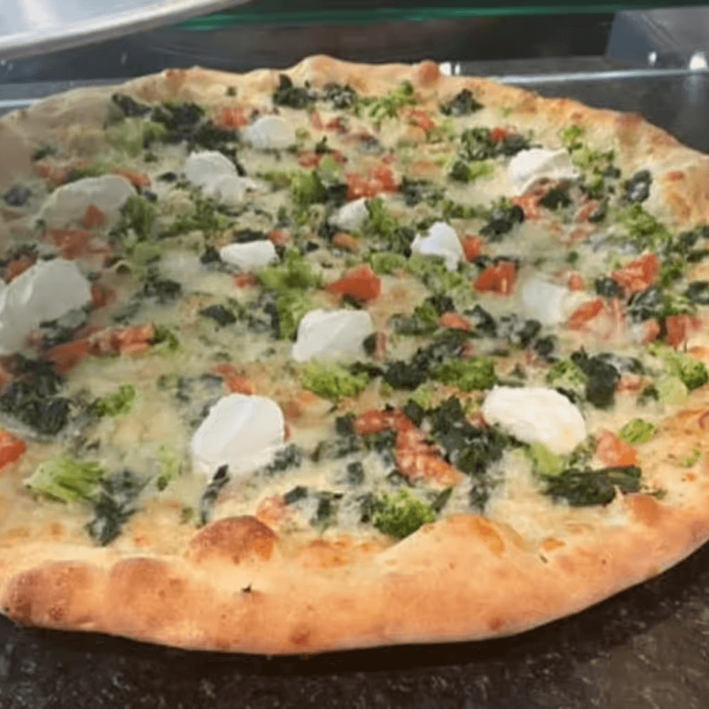 Tomatoes, spinach, broccoli & ricotta. We use 100% all-natural cheese.