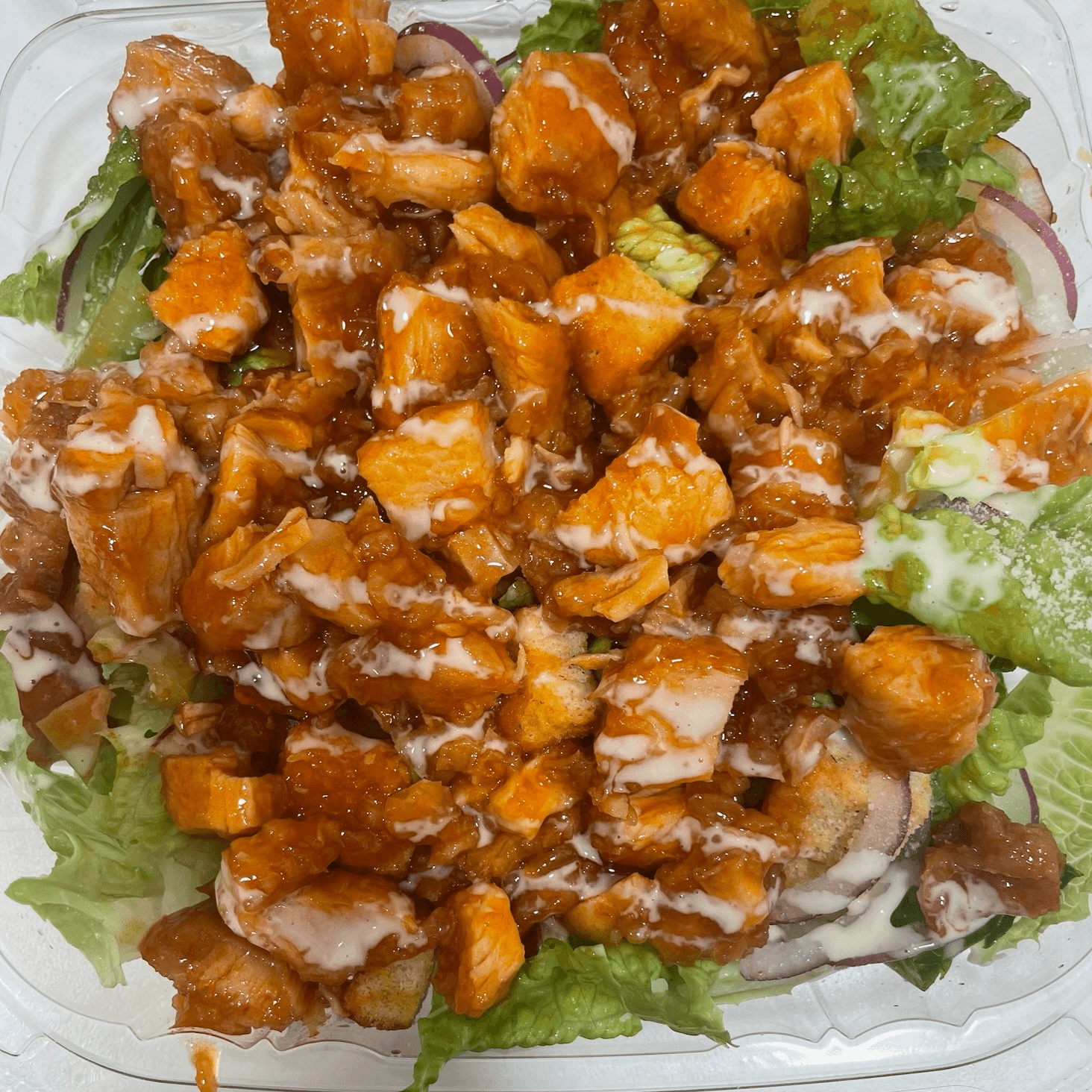 Grilled chicken, romaine, red onions & Caesar dressing. Served with chips. Make it a platter & add fries for additional cost