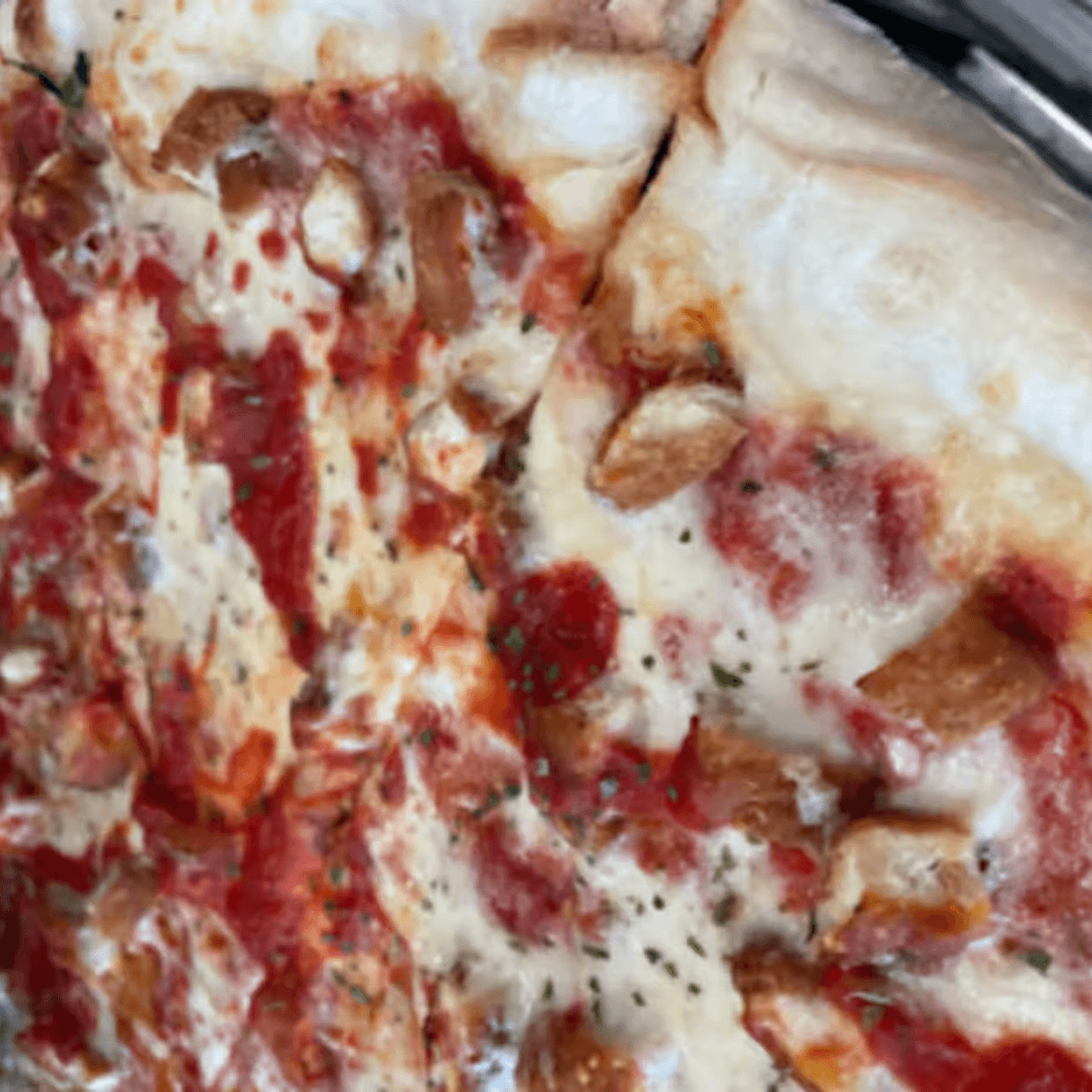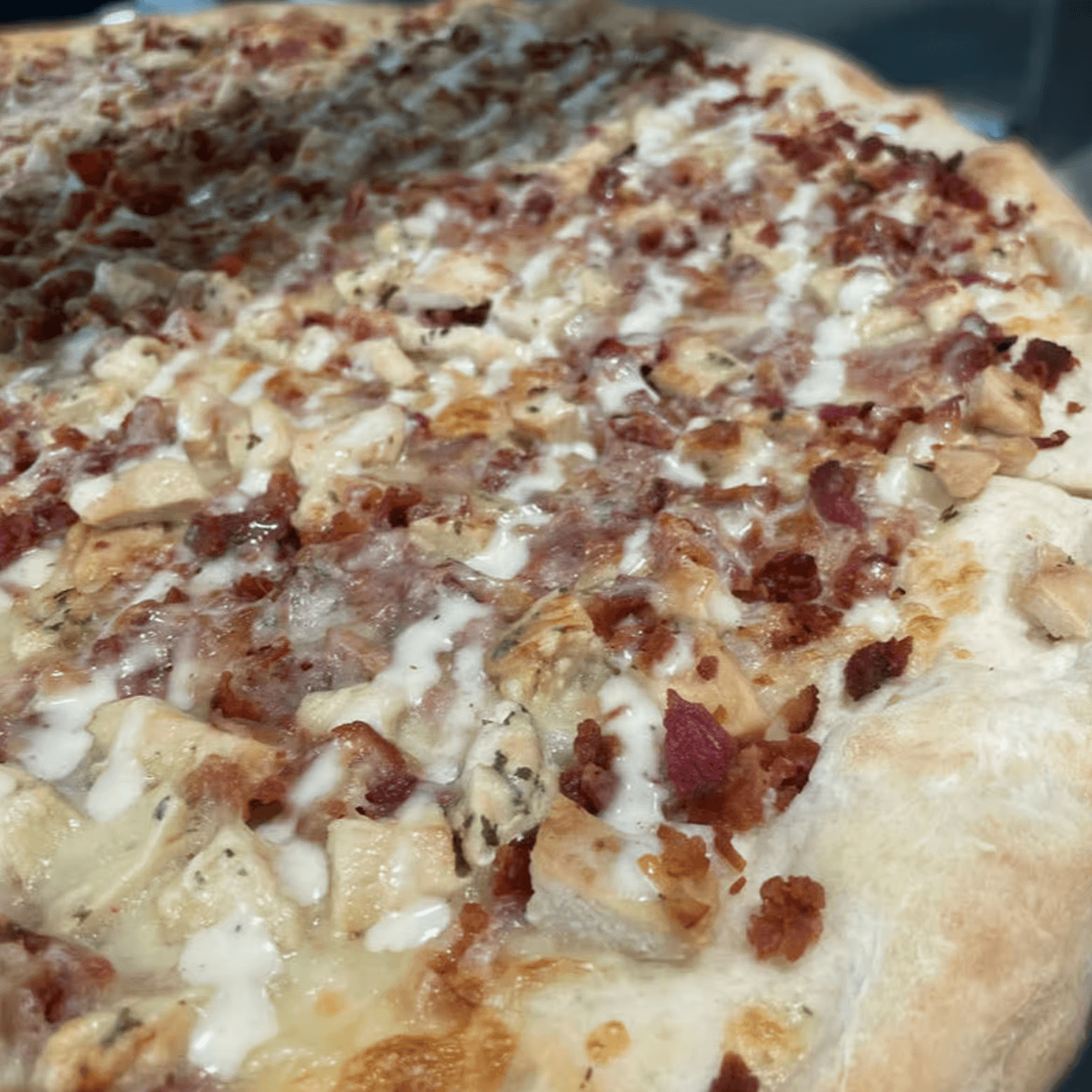 Fresh grilled chicken tossed in our garlic Parmesan sauce on a white pizza. We use 100% all-natural cheese.
