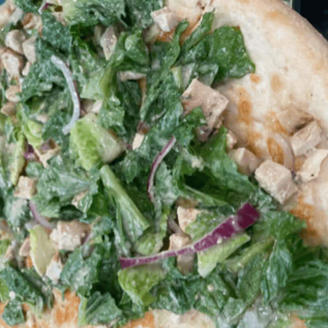 Grilled chicken, romaine, red onions & Caesar dressing. We use 100% all-natural cheese.